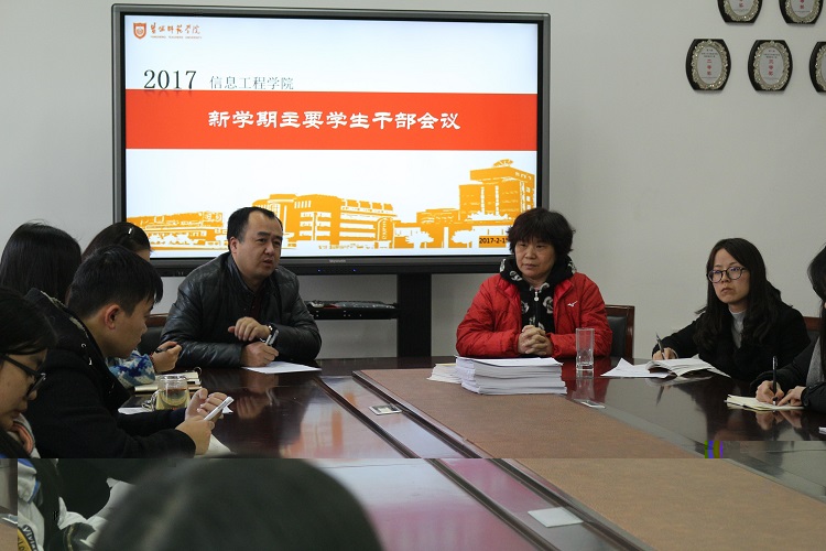 2月15日下午3點30 ,學院在5号樓會議室召開新學期學生幹部會議。此次會議由學工辦主任盧東祥主持召開,學院黨總支書記朱佳芳,輔導員施桂紅、卞雅妮、毛阿璇以及各班主要學生幹部參與此次會議。