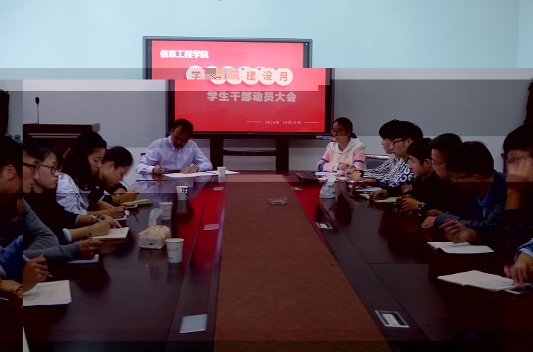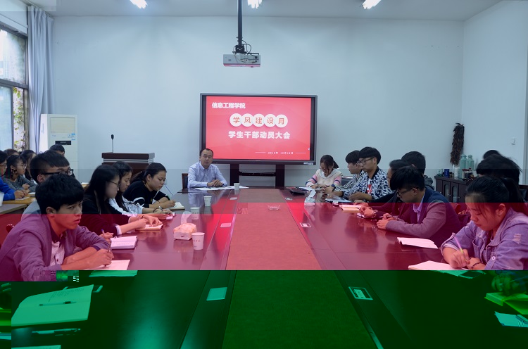 學風是大學精神的居中表現,是高校的立校之本,發展之魂。10月12日下午4點,我院于5号樓會議室召開學風建設月學生幹部動員大會。學工辦主任盧東祥主持會議,輔導員施桂紅出席會議,學生會幹部、各班班長、團支書參與本次會議。