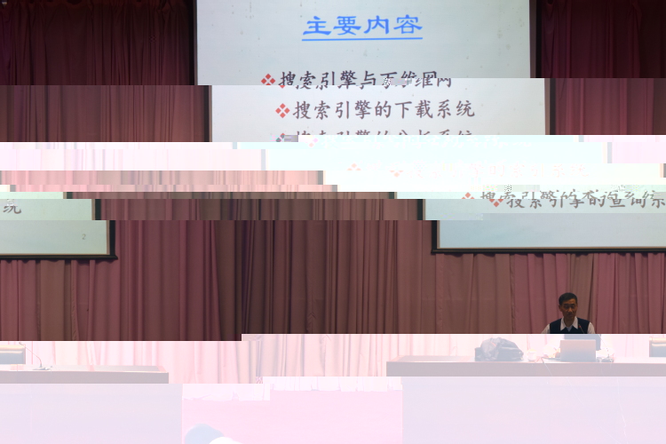 作為信息技術行業的專家,錢培德教授以豐富的專業知識和實踐經驗就搜索引擎與萬維網的關系和搜索引擎的發展兩方面為我們引出了搜索引擎的發展曆史,強調了搜索引擎的重要性。錢教授還為我們詳細介紹了搜索引擎的四大體系結構——下載系統、分析系統、索引系統和查詢系統,圖文并茂地給我們講解了每一部分的作用、重要性以及發展目标,極其成功地激發了同學們的學習興趣,為良好學風的構建做了一大貢獻。