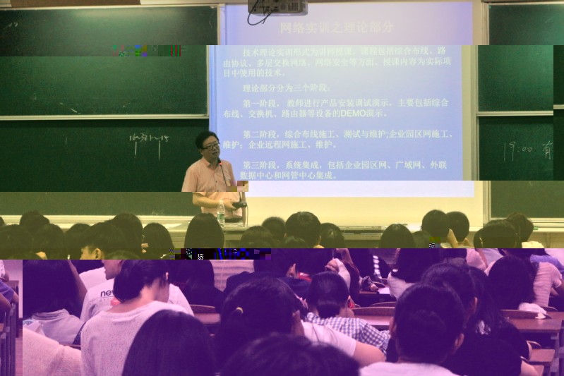 講座中,成老師從整體上對暑期社會實踐夏令營活動的情況、意義、現狀進行了介紹,之後又從與活動相關的合作夥伴,企業顧問團隊,以及活動流程,這三個方面展開,并進行講解,傳達了學校對本次活動的重視及支持,介紹了學校對此次活動提供的各方面幫助,并鼓勵大家積極參與其中。成老師表示:在實訓期間,學生們不僅理論上對網絡有全新的認識,在實踐能力上也将會得到提高,第一次親身感受到理論與實際的相結合。