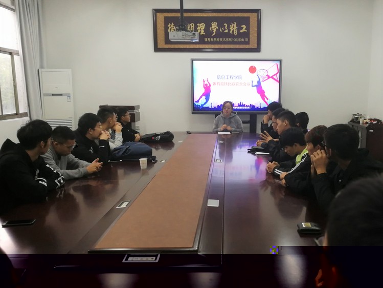 11月7日中午11點,信息工程學院于學院會議室召開體育競技比賽安全會議,此次會議由輔導員毛阿璇主持召開,黨總支副書記、副院長趙任憑出席會議,學院籃球隊與足球隊隊員參加本次會議。