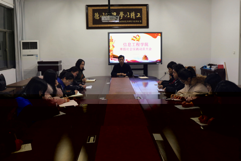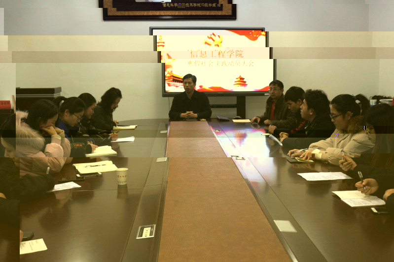 1月17日下午,信息工程學院在學院會議室召開寒假社會實踐動員大會。學院黨總支書記殷鳳春,黨總支副書記、副院長趙任憑,團總支副書記卞雅妮及全體團支書參會。會議由卞雅妮主持。