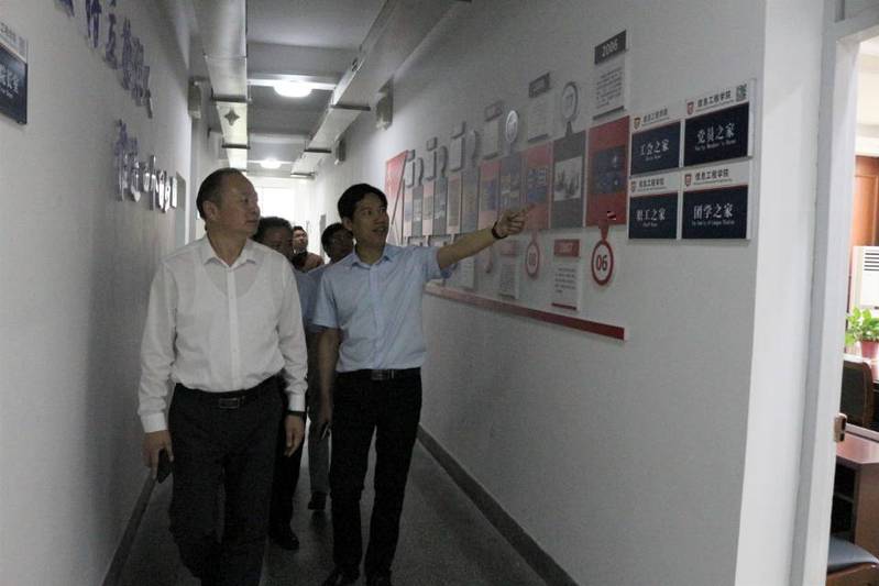 方忠參觀了信息工程學院黨建文化牆,黨員之家、工會之家、職工之家、團學之家,校友牆、榮譽牆,比賽獲獎展示台,專業社團創新創業活動室,就業工作展示台等場所。方忠對信息工程學院的工作給予了充分肯定,他贊揚了學院黨員之家中“黨員活動記錄台”的設計。方忠指出:“記錄台上,每個黨員的黨員活動證都可以從中找到,上面記錄的黨日活動、黨費收繳情況一目了然,在這個過程中,黨支部的陣地建設、黨員的歸屬感與參與感更加強烈了。”