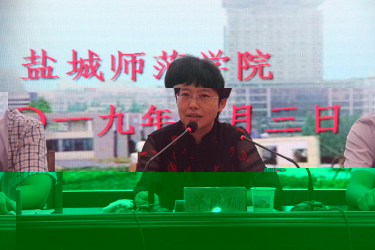 畢鳳珊教授緻歡迎辭,并為學員授班旗。她代表鹽城師範學院對遠道而來學習的學員表示熱烈的歡迎。她介紹了鹽城的“四色文化”和我校的辦學特色,同時她希望廣大學員明确培訓任務,把握培訓機遇,加強自我研修,積極互動交流,力争學有所得、學有所成。