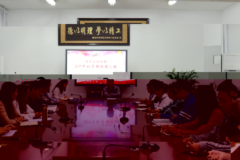 10月11日晚,信息工程學院于學院會議室召開了2019年秋學期社團工作研讨會。院黨總支副書記、副院長趙任憑出席會議,學生會主要學幹及學院各社團負責人參加會議。會議由團總支副書記卞雅妮主持。