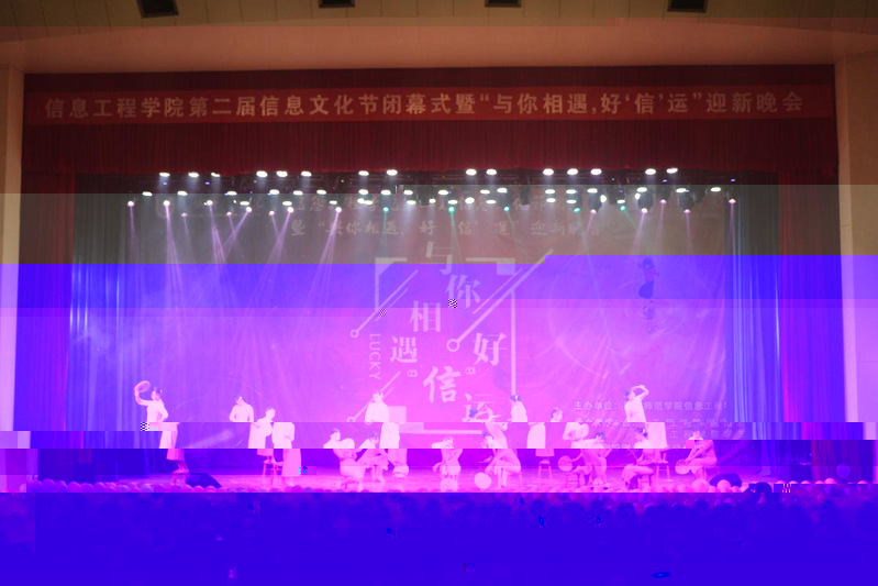 12月15日下午, 信息工程學院第二屆信息文化節暨“與你相遇,好‘信’運”迎新晚會在通榆校區南苑大禮堂成功舉辦。學院黨總支書記殷鳳春,黨總支副書記、副院長趙任憑,副院長周彩根,全體輔導員老師、新生班主任以及大一、大二學生觀看了此次晚會。