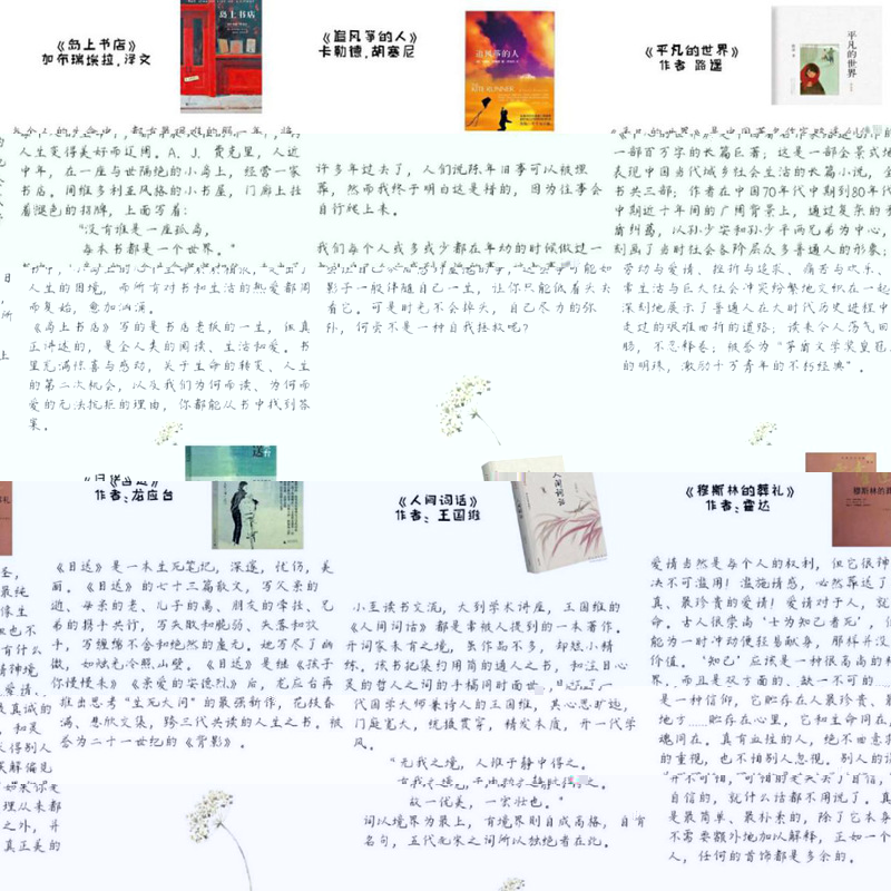 本次活動圍繞“書香助力疫戰,悅讀通達未來”主題,舉辦了“悅讀交流”“好書征集令”“全民曬書單”等系列活動,線上分享佳作、征集名言。受疫情影響,同學們全程線上互動,郵箱往來,人人參與,活動參與者通過積極向他人推薦優秀書籍、介紹讀書格言、摘抄名篇名段、抒發讀書感悟等方式,分享好書、快樂讀書、習慣讀書。最終,聽雨軒将參與者用心推薦的書目制作成了漂亮的“悅”讀手賬,激起院内師生強烈的閱讀共鳴。