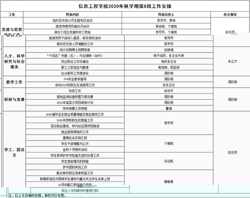 信息工程學院2020年秋學期第8周工作安排