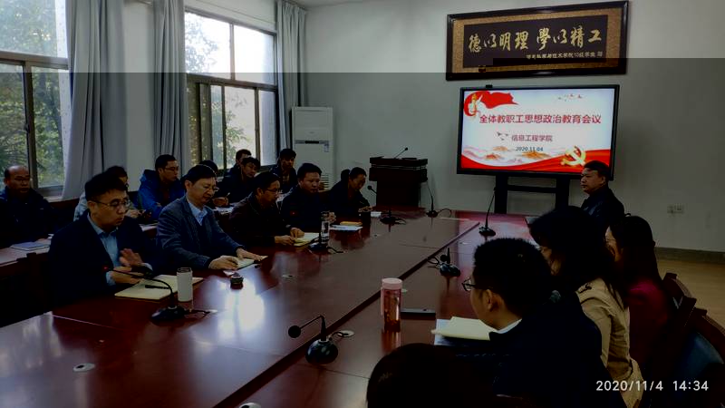 11月4日下午2:30,信息工程學院在學院會議室召開教職工思想政治學習會。全體教職員工參加會議,會議由黨總支書記趙任憑主持。