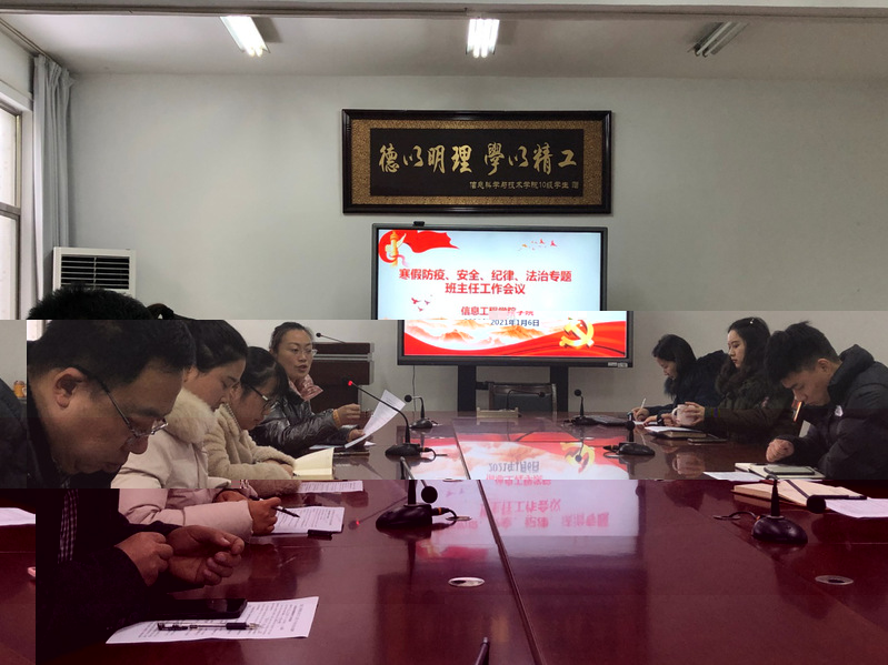 為切實做好寒假前後學生教育和管理工作,信息工程學院積極行動、精心組織,分别召開班主任、學生幹部專題會議,牢固樹立“第一責任人”意識,确保學院期末工作部署和疫情防控常态化要求有效落實,秋學期收尾工作圓滿完成。