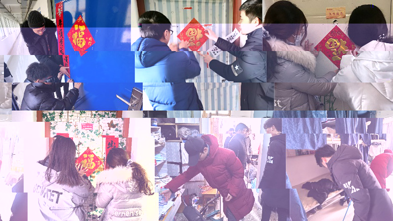 下午兩點,學生黨員、團幹組成志願服務小分隊,兵分三路,深入外省籍、少數民族學生宿舍,向同學們表達問候和祝福,幫助他們打掃宿舍衛生,協助排查安全隐患,和他們一起聊聊天、拉家常,提醒他們疫情反複,注意出行安全,少出門、戴口罩、勤洗手。随後,志願者送上準備好的新春對聯和“福”字,幫助他們貼上宿舍門框,為生辦實事,送福送到家。面對志願者們熱情的祝福,同學們表示在嚴寒的冬日感受到了學院大家庭的溫暖,紛紛表達感謝,合影留念。