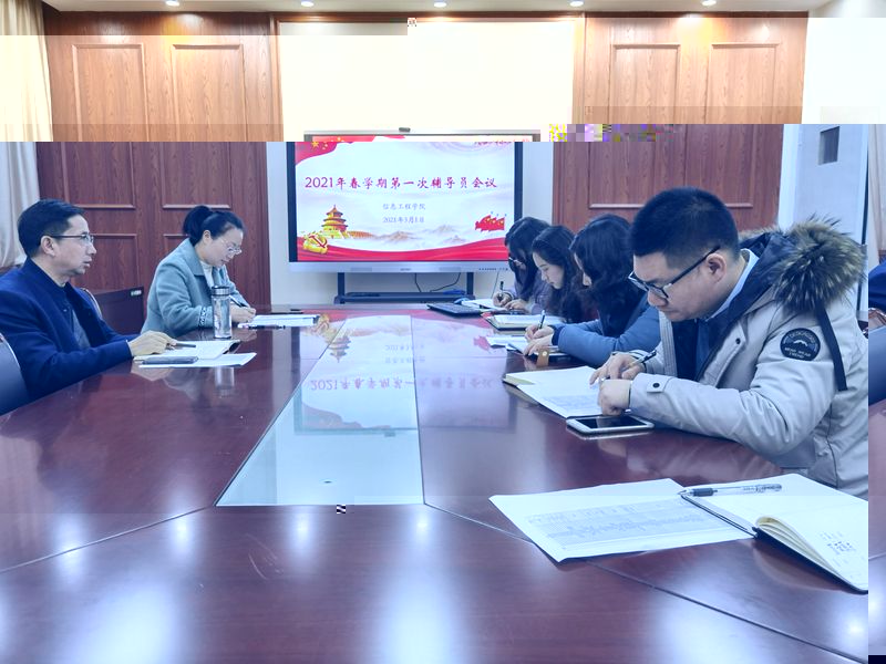 3月1日上午,信息工程學院于黨員之家召開2021年春學期開學第一次輔導員會議,黨委書記趙任憑,黨委副書記、副院長姜琳及全體輔導員參加會議。