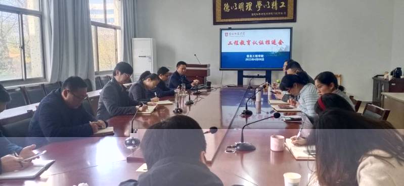 4月8日下午,信息工程學院在二樓會議室召開工程教育認證工作推進會,學院全體班子成員、軟件工程系主任盛剛、物聯網工程系主任蔡長安、數據科學與大數據技術系主任曹瑩瑩、數字媒體技術系主任陳玉、實驗中心主任王創偉、辦公室主任徐貴伍、教學辦主任劉慶偉、學工辦主任季芳芳、團委書記卞雅妮及相關專業教師和工作人員參加會議。會議由院長朱立才主持。