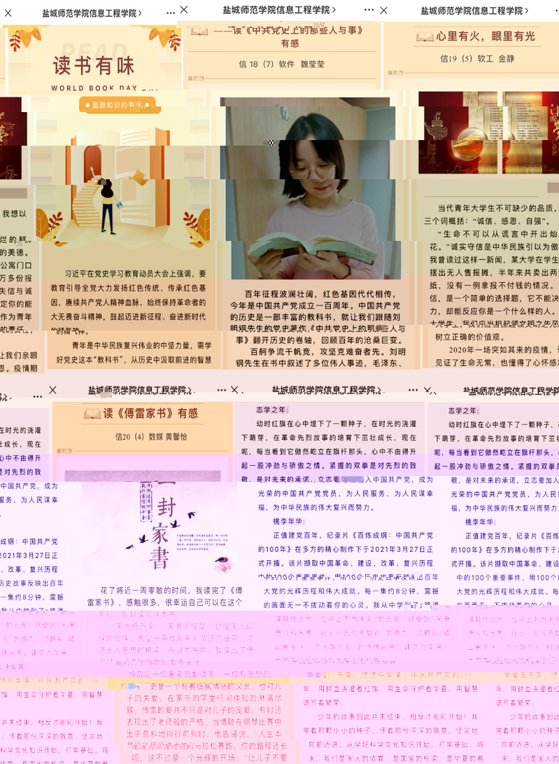 根據學校2021年校園讀書會活動方案和學風建設月舉辦讀書會活動要求,信息工程學院多措并舉,紮實開展“溫百年黨史,建書香校園”為主題的讀書分享活動,引導廣大學子從閱讀黨史教育書籍中獲得不竭的心靈滋養和精神力量,知史愛黨、學史力行,形成了讀書明理、讀書求知、讀書成才的良好風尚。