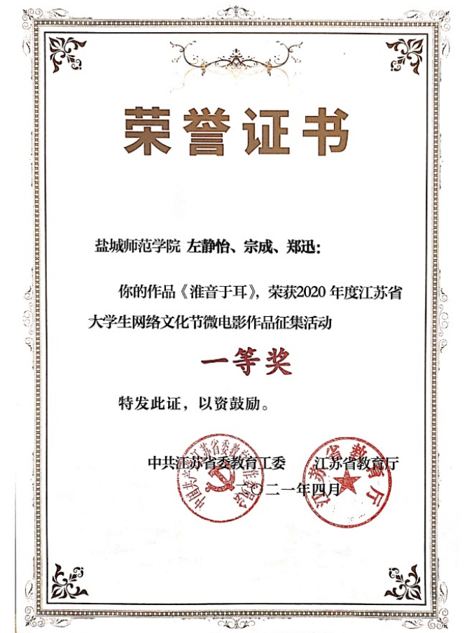 近日,2020年度江蘇省大學生網絡文化節評選結果揭曉,信息工程學院學生左靜怡、宗成、鄭迅的參賽作品《淮音于耳》,在全省數千餘部作品中脫穎而出,榮獲一等獎。