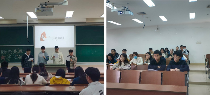 詩歌朗誦環節中,同學們相繼朗誦了毛澤東的《七律·長征》和《烈士的豐碑》、鄧雅聲的《絕命詩四首》、顧工的《我站在鐵索橋上》、劉伯堅的《帶鐐行》、宋錦相的《獄中遺詩》等詩詞。這些詩詞記錄了革命先輩們的戰鬥生活與艱苦工作,抒發了他們的理想信念,更體現其崇高人格。“砍頭不要緊,隻要主義真”,“我死國生,我死國榮,身雖死精神長生”,每一篇詩章都是烈士們用鮮血寫成,滿懷着他們對國家人民、對革命事業的一片丹心。同學們今日誦讀其詩,重溫烈士們對革命對真理的追求和無私奉獻的勇氣擔當,對一切為共産主義事業英勇犧牲的革命先輩緻以最崇高的贊譽和最深切的緬懷,民族大義之氣久久回蕩在教室。