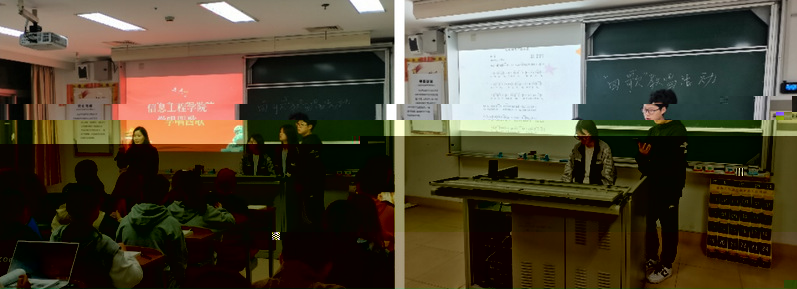 11月2日下午7:00,信息工程學院組織2021級新生開展學唱“四歌”活動,全體新生參加,本次活動由學工辦主任季芳芳主持。