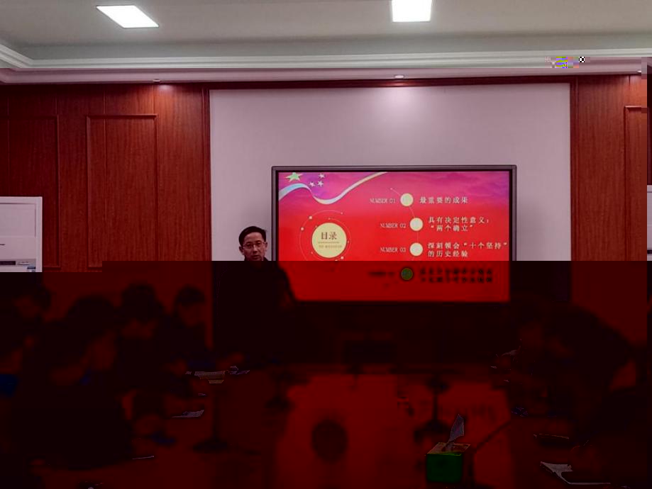 12月29日晚6:20分,信息工程學院為學生黨員開設黨的十九屆六中全會精神專題黨課,季芳芳、卞雅妮、王金銘參加會議,黨委書記趙任憑主講。