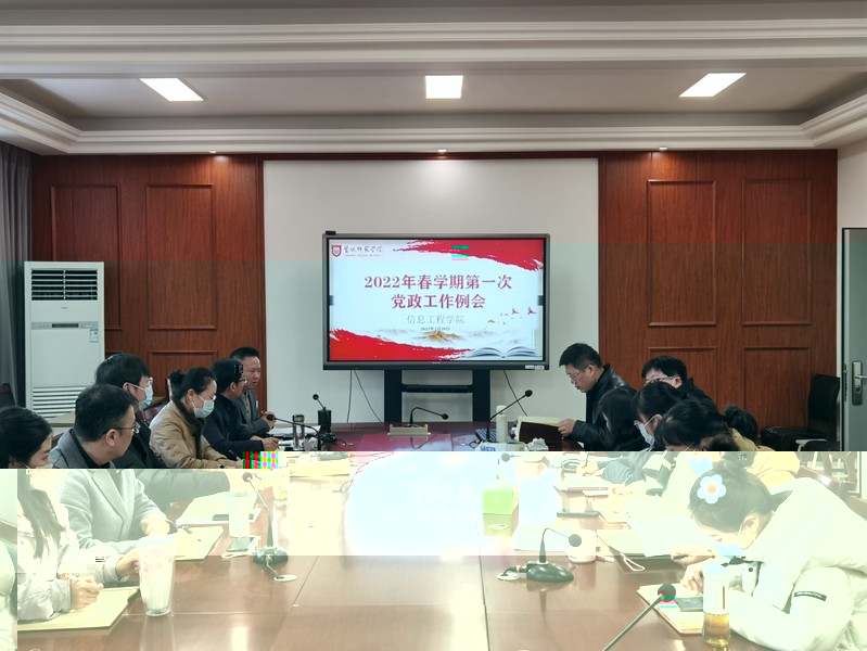 2月19日下午,信息工程學院在院會議室召開了2022年春學期第一次黨政工作例會。學院領導班子、科級以上幹部、支部書記、系主任參加會議,會議由朱立才主持。