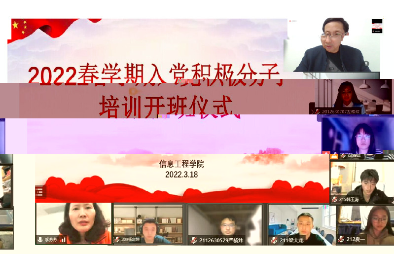 3月18日晚7:00,伟德官网手机版舉行2022年春學期入黨積極分子培訓線上開班儀式。院黨委書記趙任憑出席并作學習貫徹全國“兩會”精神的專題黨課。學院組織員、學生第一黨支部書記季芳芳老師主持會議。