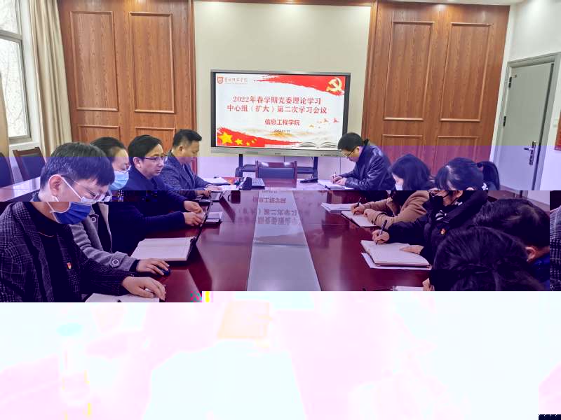 3月23日上午,信息工程學院在黨員之家舉辦2022年春學期黨委理論學習中心組(擴大)第二次學習會,本次會議以學習貫徹兩會精神為主題,學院領導班子、黨委委員、各支部書記參加,會議由院黨委書記趙任憑主持。