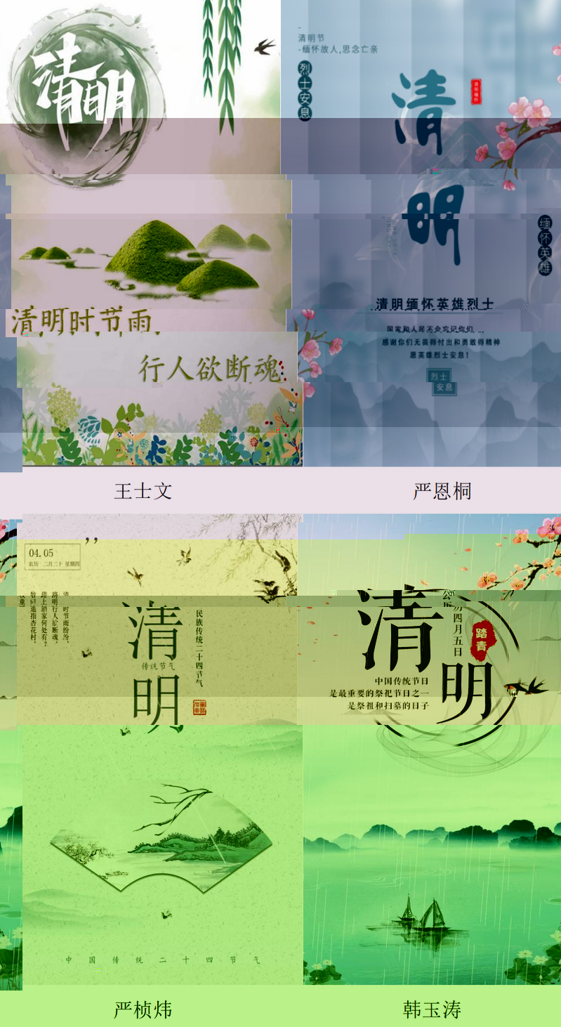 追思,是為了銘記不能忘卻的過往;緬懷,是為了生者帶着這種精神繼續前行。為讓紅色基因融入血脈,英烈精神薪火相傳,增強同學們積極做好校園疫情防控的責任與擔當意識,學生黨員和入黨積極分子們開展了清明節主題海報設計活動,将緬懷先烈、追憶先輩之情寄托于畫面,帶着愛與溫柔繼續前行。