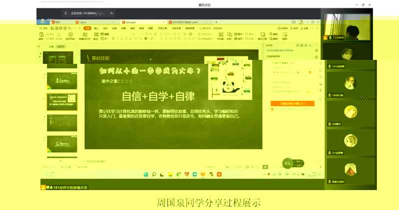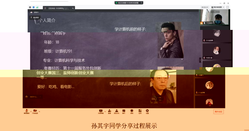 本次活動采用線上的方式進行,由邀請嘉賓分享學習與比賽的經驗。王永林同學就其參賽經曆為同學們分享了他比賽的心路曆程,講述了比賽對同學們的重要性,從各個方面分析比賽,給同學們提供了許多寶貴的建議。
