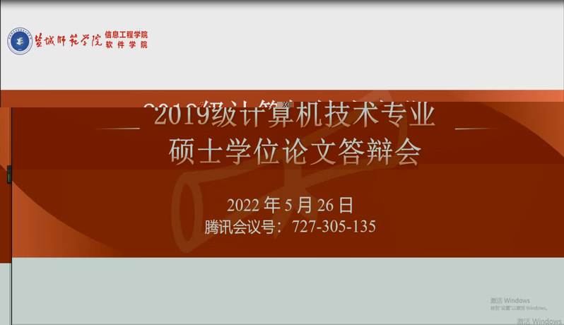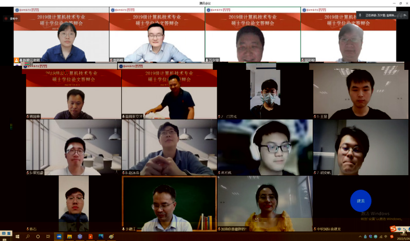 2022年5月26日,南京工業大學-鹽城師範學院聯合培養的2019級計算機技術專業碩士學位論文答辯會如期舉行。考慮到疫情防控,本次答辯借助線上騰訊會議。南京工業大學萬夕裡教授擔任答辯委員會主席,答辯委員會專家組成員有:中軟國際信息技術有限公司高級工程師袁建龍、江蘇源普科技有限公司副總經理蔣國春、鹽城師範學院教授周彩根、副教授袁曉峰。答辯秘書由陳碧雲博士擔任。碩士生與導師等參加了此次答辯會。
