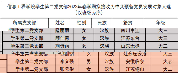 關于拟将隆麗麗等同志接收為中共預備黨員的公示