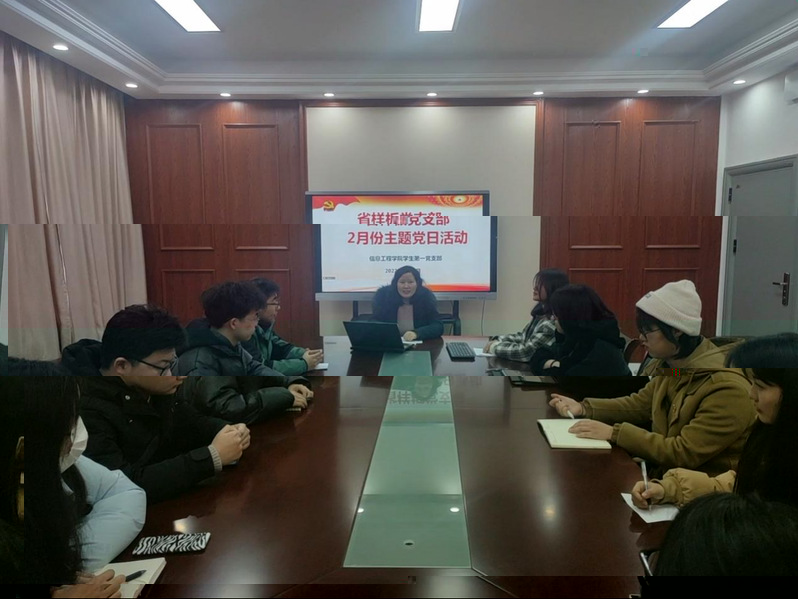2023年2月22日下午,信息工程學院樣闆支部學生第一黨支部首批省樣闆支部培育創建單位在學院黨員之家召開2月份主題黨日活動,支部全體黨員參加。活動由支部書記季芳芳主持。