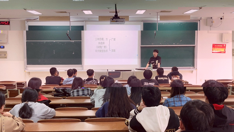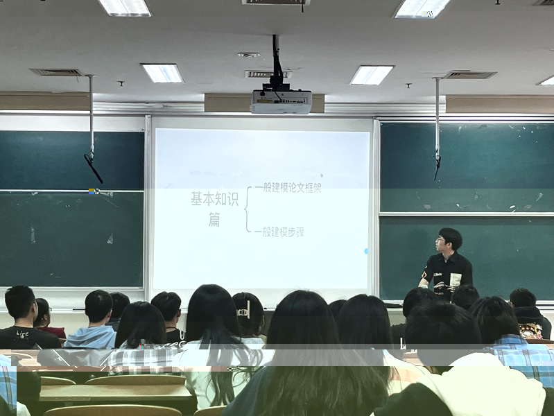 李文強同學結合自身參賽經曆,從數學建模大賽組隊、備賽、比賽過程角度,向現場同學進行簡要分享。他以數模題目為例,講述了在比賽中,團隊圍繞項目題目進行協作分析、按需分工、共同建模的詳細過程。李文強強調了論文寫作的重要性,現場分享了提升論文寫作規範性的相關要求,他鼓勵同學們在比賽中團結協作、不言放棄、勇攀高峰。