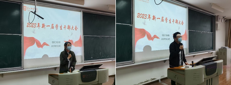 會上,學院2023屆學生會和團委主要學生幹部依次發言,彙報部門工作成績及未來工作計劃。上屆主席團成員結合自身實際,分享管理工作與學科競賽經驗。全體輔導員老師認真指導工作,并強調各條塊工作重點和注意事項。學工辦主任季芳芳鼓勵同學們,在工作中鍛煉和提升能力,努力發揮橋梁紐帶、榜樣帶頭、團結凝聚三大作用。