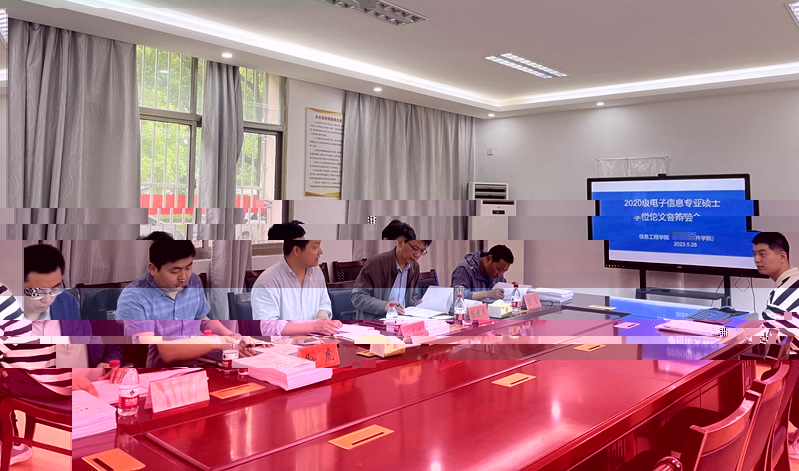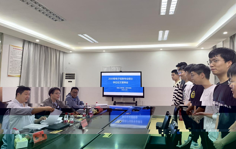 5月28日下午,信息工程學院2020級碩士研究生學位論文答辯會在4-103會議室舉行。本次答辯會邀請南京工業大學長萬夕裡教授擔任答辯委員會主席,淮陰工學院陳曉兵教授、北京新大陸時代科技有限公司高級工程師孫虎、我院陳玉教授和顧愛華副教授組成答辯委員會。會議由萬夕裡主持,信息工程學院黨總支副書記、院長朱立才、副院長周彩根出席答辯會。
