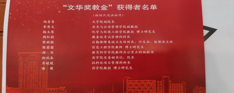 “文華獎教金”每年評選一次,每次評選全校十名在本職崗位上積極進取、勤懇表率、績效突出的教職工。其設立宗旨在于倡導教職工熱愛教育事業,潛心培育學生,打造一支有理想信念、有道德情操、有紮實學識、有仁愛之心的高素質教育隊伍。