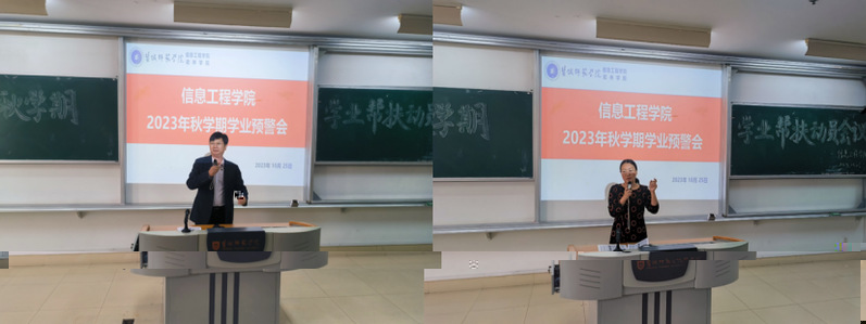 10月25日下午,信息工程學院在主樓B101教室召開學業幫扶動員會議,院黨委副書記姜琳、院副院長周彩根、學工辦主任季芳芳、輔導員袁佳佳及全體學業預警學生和幫扶學生出席會議,會議由袁佳佳主持。