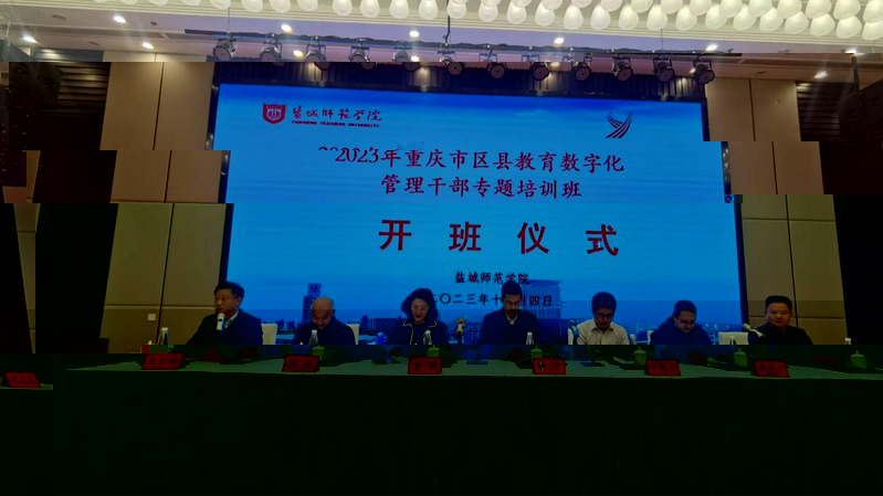 12月4日上午,鹽城師範學院承辦的“市培計劃(2023)”——重慶市區縣教育數字化管理幹部專題培訓班開班儀式在我校舉行。教育部科學技術與信息化司教育信息化與網絡安全處處長任昌山、重慶市教育委員會科技處處長劉暢、教育部教指委委員陳琳等領導和專家出席開班儀式。副校長徐華到會緻辭,成教處處長、繼續教育學院院長王玉坤主持開班儀式。