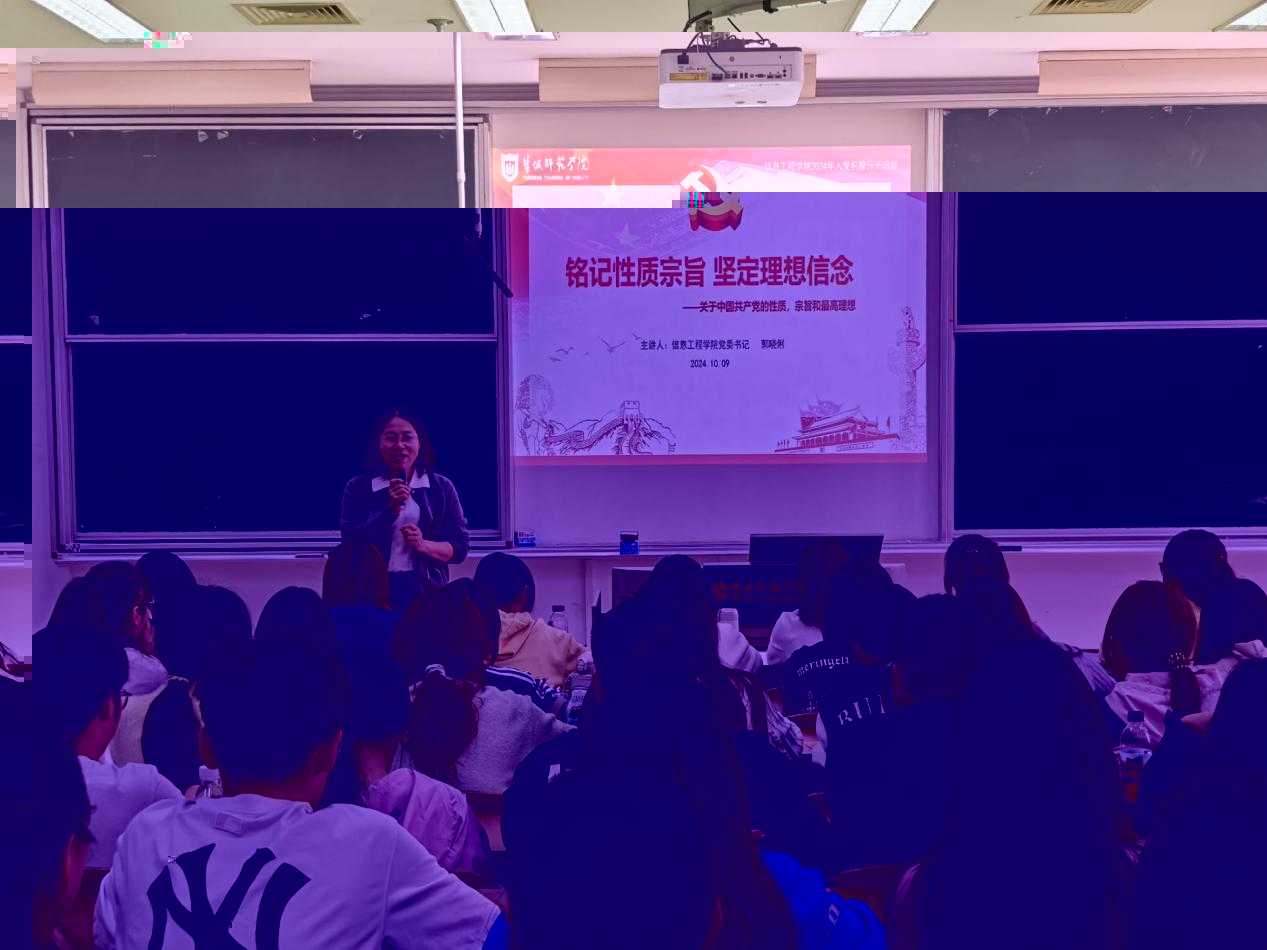 10月9日下午兩點,信息工程學院于通榆校區主樓B202成功舉辦2024年度秋學期入黨積極分子培訓開班儀式暨黨課第一講。開班儀式由學生第一黨支部書記毛阿璇主持,邀請了學院黨委書記郭曉俐授課,76名入黨積極分子參加活動。