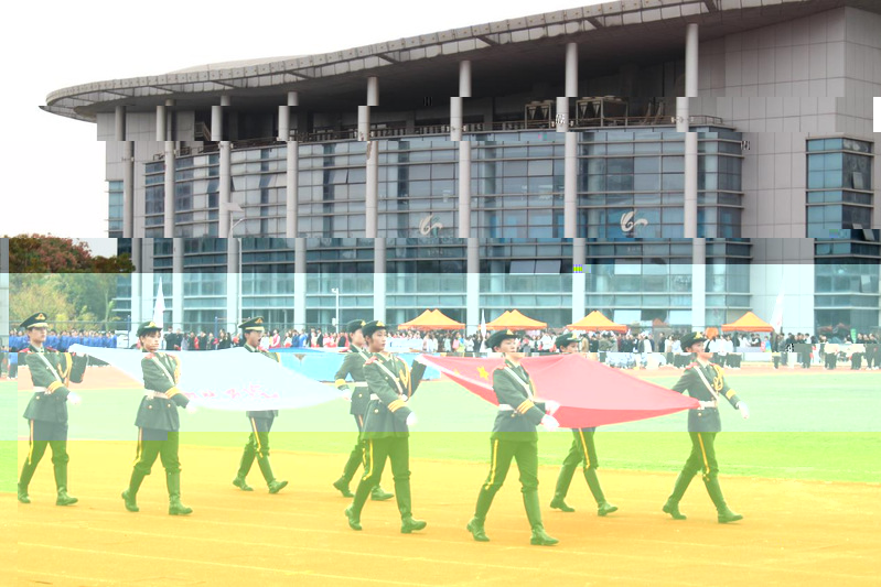 我院方陣隊大步流星,昂首步入現場