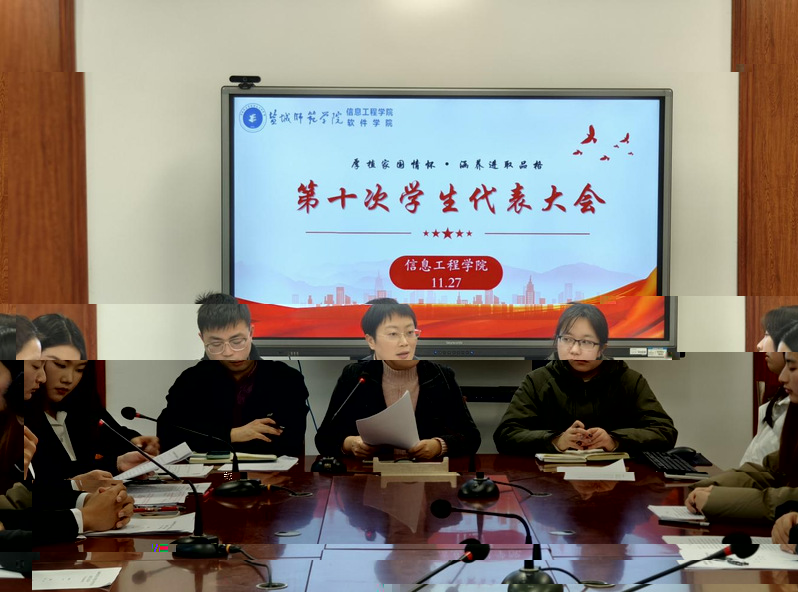 11月27日下午兩點,信息工程學院第十次學生代表大會在學院樓204順利召開。院黨委副書記姜琳、團委副書記王金銘、輔導員袁佳佳出席本次會議,47名大會代表參加。