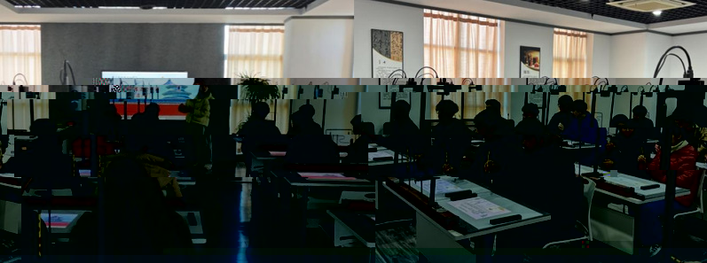 活動現場,留學生們被眼前的一幕深深吸引:虛拟書法教室、智能書法桌,以及能夠無需紙墨的智能化書寫系統配套設施,這些融合了傳統書法與現代科技的産物,讓書法這一古老藝術煥發出了新的生機與活力。在書法老師們的悉心指導下,留學生們興奮地拿起毛筆,在智能書法桌上開始了他們的書法之旅,從握筆姿勢學起,逐步領略筆畫的起承轉合、字體的間架結構中所包含的書寫奧秘。面前上的虛拟宣紙,随着筆尖的輕觸而顯現出墨迹,每一次提按轉折都被精準捕捉,智能化分析。盡管他們的筆觸略顯生疏,但那份專注與認真令人動容。來自摩洛哥的留學生KAOUKAB CHOUROUK同學,在體驗科技書法後激動地說:“這真是太神奇了!科技書法不僅讓我感受到了傳統書法的魅力,更讓我看到了科技與文化的完美結合。”來自塔吉克斯坦的AKHMEDOVAT AKHMINAKHON同學也收獲頗豐,她說:“在書寫的過程中,我仿佛在與古老的中國進行着一場跨越時空的智慧對話,同時又感受到了現代科技的無限可能。”