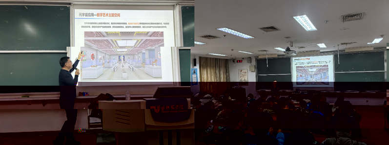 劉海榮以元宇宙數字經濟時代新技術、新應用、新職業為主題,圍繞政策分享、行業發展、創新應用三個方面解析了元宇宙的概念,詳細闡述了數字經濟時代新技術賦能下元宇宙融合VR、AR、AI、區塊鍊等技術構建虛拟空間并影響多領域的發展現狀,為同學們指明了職業發展的新路徑。随後,劉海榮通過生動的案例分享了元宇宙技術在教育、工業和電商領域的創新應用,揭示了新技術賦能多行業提質增效,為同學們提供了更多元的職業選擇,拓寬了求職創業空間。他勉勵同學們抓住新時代發展機遇,增強創新意識,培養創新能力,堅定方向不斷努力方可成就美好未來。活動現場氣氛熱烈,同學們深受鼓舞。