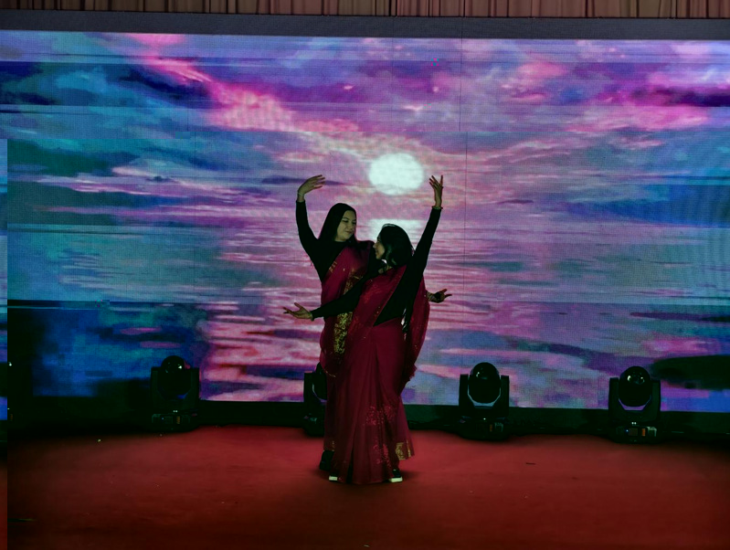 晚會分“青春飛揚 夢想啟航”“國際視野 多元風采”“生活交響 成長禮贊” 三個篇章,節目類型多樣,精彩紛呈。舞蹈《洛春賦》衣袂飄飄,生動展現了“舞低楊柳樓心月,歌盡桃花扇底風 ”的唯美意境,帶領觀衆領略傳統文化的獨特魅力;歌曲《光年之外》讓人感受到超越距離的心靈共鳴與不朽的浪漫情懷;朗誦《青春中國》以激昂的語調、飽滿的情感,将披荊斬棘的決心展現的淋漓盡緻;小品《反詐聯盟》聚焦當下社會熱點,通過诙諧逗趣的表演形式和跌宕起伏的故事情節,讓觀衆在陣陣捧腹歡笑中普及反詐知識、提升反詐能力,輔導員陳文奂更是在小品結尾呼籲廣大同學擦亮眼睛,謹防電信詐騙。留學生代表帶來了印度傳統舞蹈和孟加拉經典歌曲,為現場觀衆呈現了一場異彩紛呈的文化盛宴;張燕妮、陳勇老師分别帶來了歌曲《沒那麼簡單》《虎口脫險》,為同學們呈現了一場精彩的視聽盛宴;唐澤民老師帶來了朗誦《尋夢者》,聲情并茂,扣人心弦。