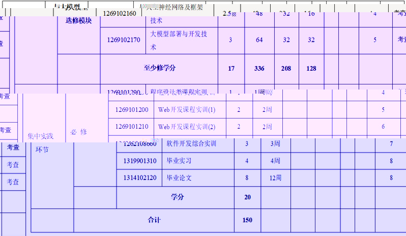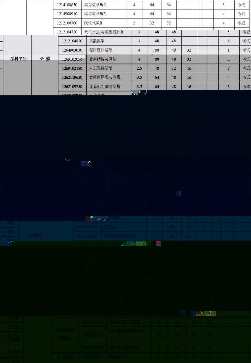 程序設計基礎、數據結構與算法、數據庫原理與應用、操作系統、計算機網絡、軟件需求與建模、算法設計與分析、軟件質量保證與測試、軟件項目管理。