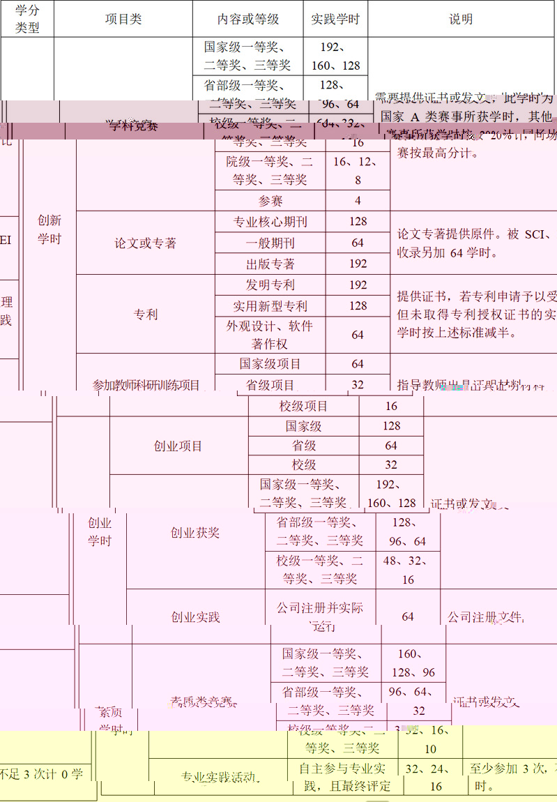 軟件工程專業創新創業活動學分認定标準