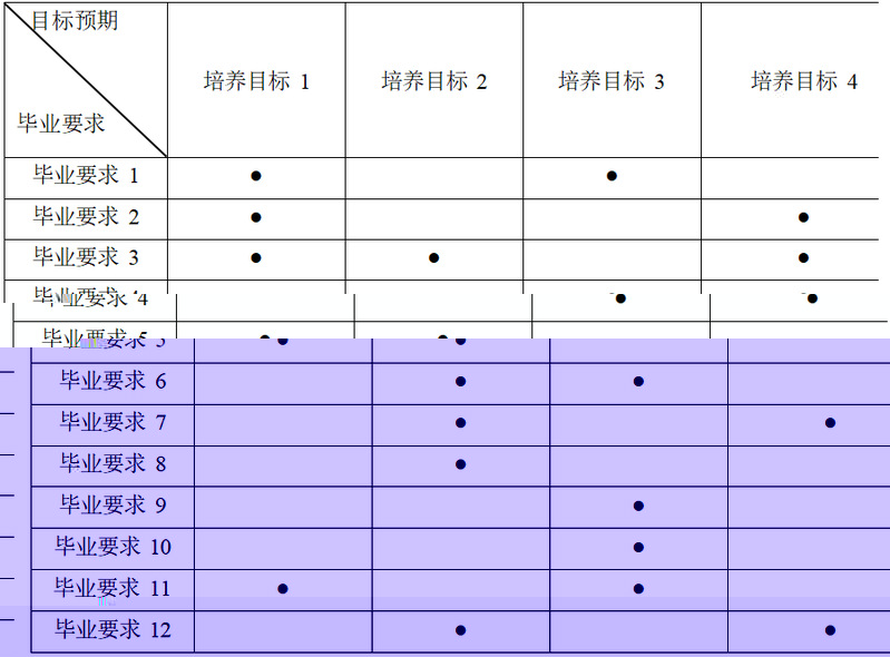 注:各專業在畢業要求與培養目标相對應處用“●”标記