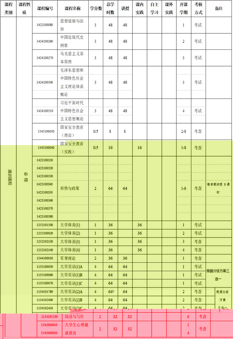 九、教學安排表[軟件工程專業]
