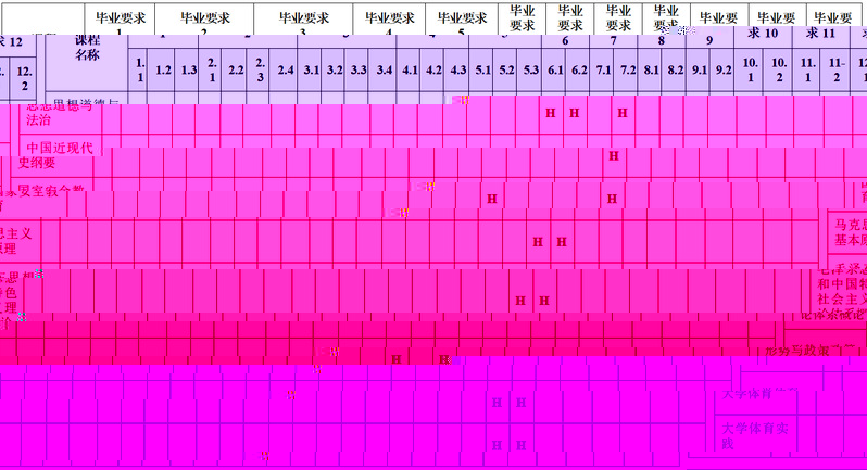 說明:H表示該門課程對該畢業要求支撐度高,H*标記課程為與每項畢業要求達成關聯度最高的課程。