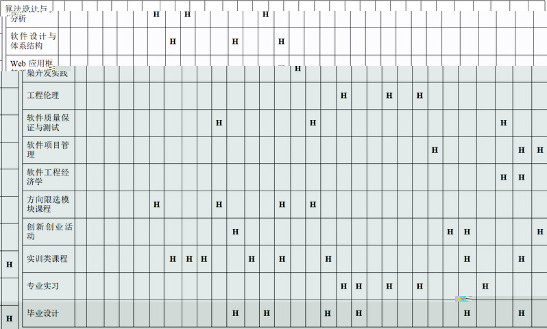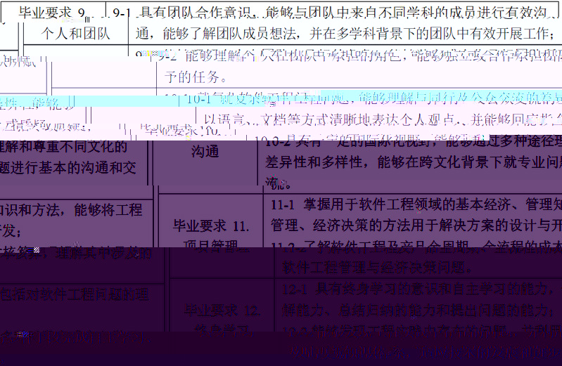 軟件工程專業畢業要求與課程及教學活動關聯矩陣