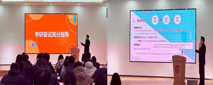 會上,夏老師聚焦複試全流程中的提分策略、面試禮儀、調劑攻略三大核心内容,為同學們打造了一場系統且實用的分享盛宴。在提分策略環節,夏老師全面剖析了專業課複習、英語口語表達技巧及科研經曆展示等複試評分指标點與考察重點,提醒考生們緊跟前沿技術動态,提前預判,做到有備無患。在面試禮儀環節,夏老師講解并示範了着裝規範、儀态管理及語言表達的細微之處。在調劑攻略環節,夏老師更是詳細解讀了調劑政策、院校選擇方法與溝通技巧,建議考生結合自身分數與專業特點,精準定位調劑目标,主動出擊,抓住時機,打好這場信息與心态的雙重戰役。