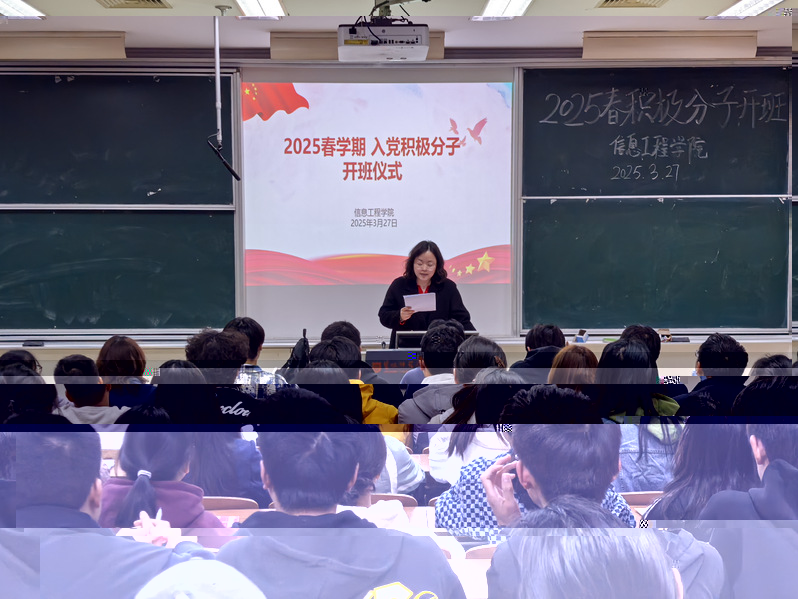 3月27日17:00,信息工程學院2025年春學期入黨積極分子培訓班在主樓B202正式開班。學院黨委書記郭曉俐以“與人民同行,向理想奮進”為題,為103名入黨積極分子講授首場專題黨課。開班儀式由學生第一黨支部書記毛阿璇主持。